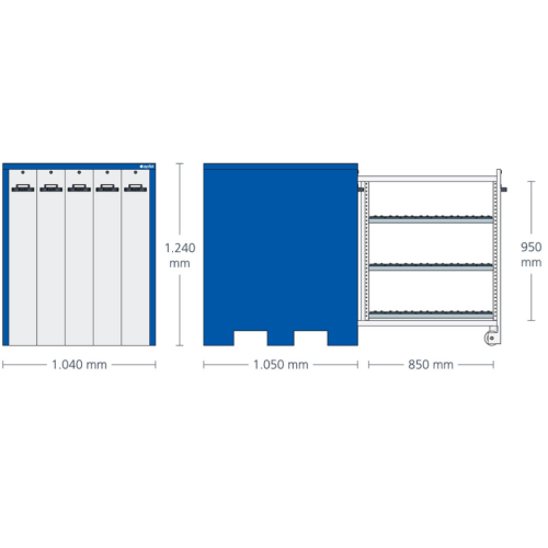 Omara za orodje z izvlečnimi predali je namenjena shranjevanju in organizaciji orodja v delavnicah in proizvodnih obratih. Omogoča dostop z obeh strani ter pregledno razporeditev orodja.