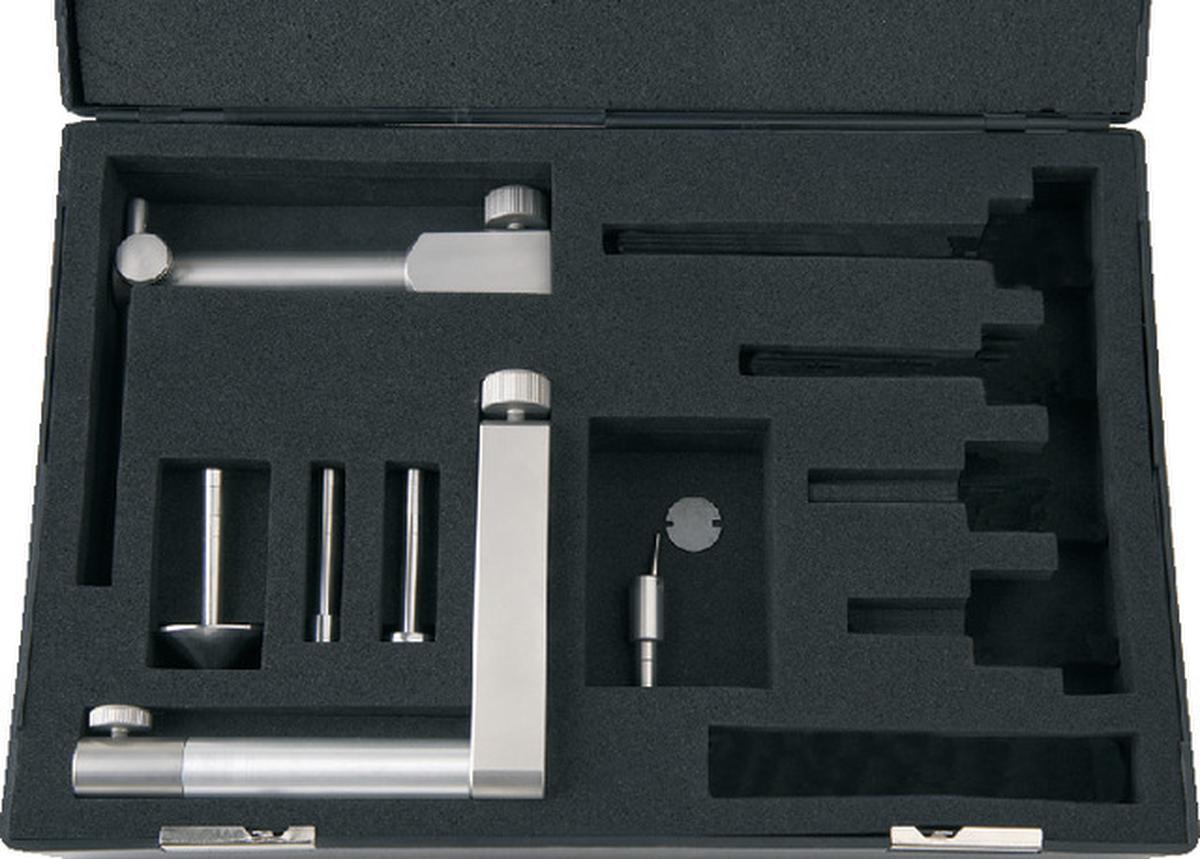 Zubehörkoffer<br/>Träger für Messeinsätze 817 h2<br/>Scheibenmesseinsatz S15/31,2<br/>Zylindermesseinsatz Z10/31,2<br/>Kegelmesseinsatz MKe 30<br/>Tiefenmesstaster inkl. Träger TMT 120<br/>Messeinsatz für MarTest-Messeinsätze M2, KM2